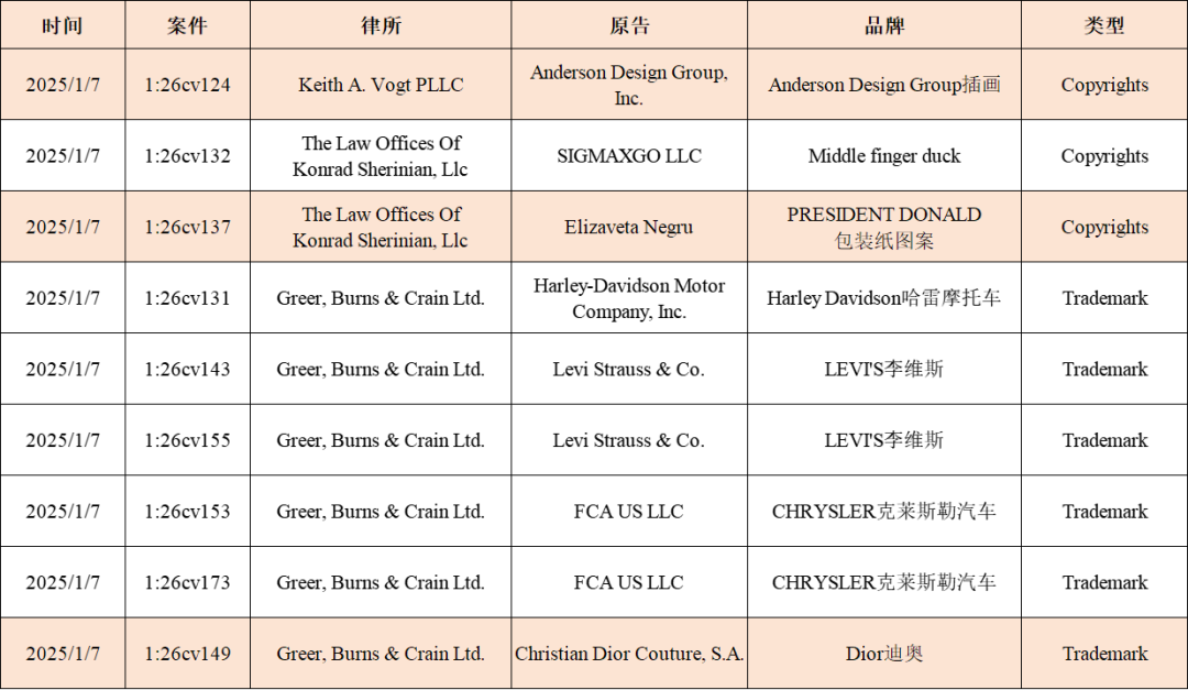 我们汇总了当天发生案件的TRO侵权案件,建议卖家朋友们做好侵权预防,排查店铺,下架相关商品,及时提出资金,以免店铺资金受损!