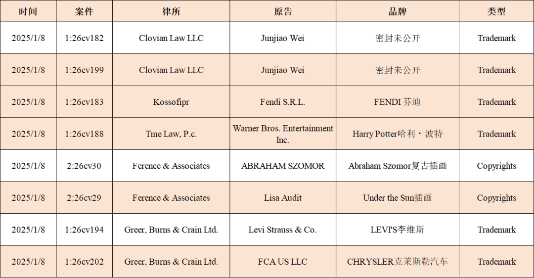 我们汇总了当天发生案件的TRO侵权案件,建议卖家朋友们做好侵权预防,排查店铺,下架相关商品,及时提出资金,以免店铺资金受损!