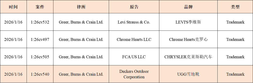 汇总案件编号: 26-cv-487 / 26-cv-486 / 26-cv-489 / 26-cv-484 / 26-cv-474 / 26-cv-532 / 26-cv-469 / 26-cv-497 / 26-cv-505 / 26-cv-540 起诉时间:1月15日 品牌:Harriet Tubman's Underground Railroad 代理律所:Keith A. Vogt PLLC 法院地:United States District Court, Illinois NorthernPranash 起诉时间:1月15日 品牌:Hem of His Garment 代理律所:Keith A. Vogt PLLC 法院地:United States District Court, Illinois NorthernPranash 本案系Wayne Pascall向伊利诺伊州北区联邦地区法院东部地区提起的版权侵权诉讼。 起诉时间:1月15日 品牌:Amy Judd作品 代理律所:Keith A. Vogt PLLC 法院地:United States District Court, Illinois NorthernPranash