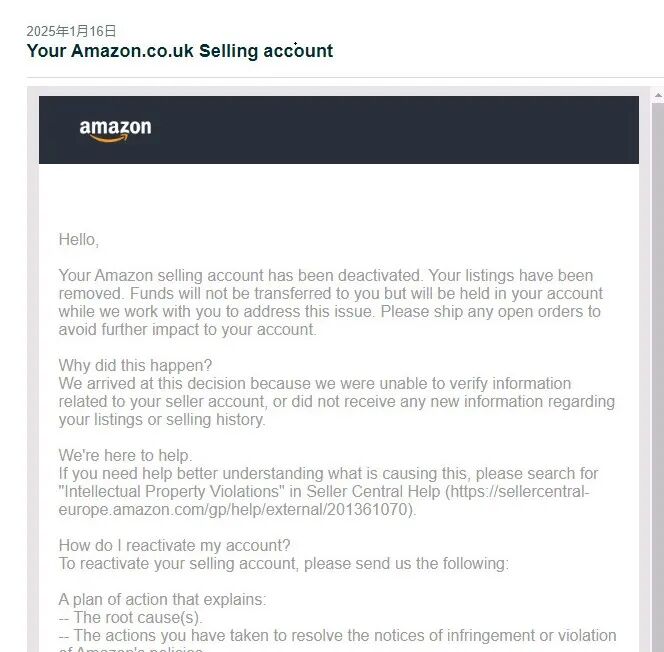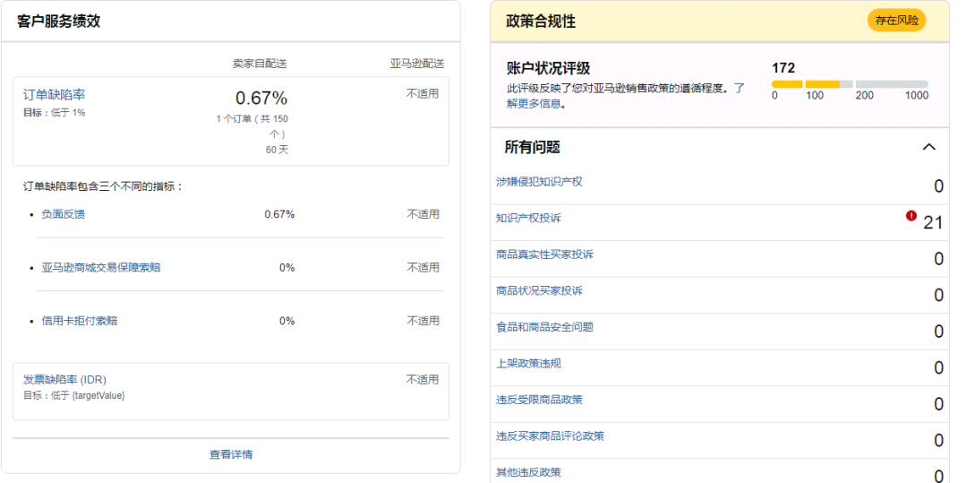 SellerAegis接单后,第一时间对亚马逊账户状况页面展开专项核查:账户已处在风险状态,评级分数172分,政策合规性模块存在21条知识产权侵权记录,未发现其他类型的违规问题,由此明确此次账户停用原因为知识产权违规。 SellerAegis随后与卖家展开深度沟通,进一步查明背后核心原因:该卖家未建立完善的采购与合规审查流程,员工轻信供应商资质便盲目推进采购;且在多次收到亚马逊知识产权侵权投诉通知后,未及时对涉事ASIN采取下架等整改措施,最终触发平台账户停用机制。 SellerAegis团队通过对账户后台警告通知的全面核查和整理,最终明确问题的核心要点,制定了针对性的申诉思路。具体思路如下: 思路1、明确违规: 主动承认违规事实,精准援引平台关于知识产权保护及账户合规运营的相关政策条款,清晰表明对违规性质的认知。 思路2、深挖根源: 深入剖析违规根源在于企业合规管理意识薄弱,缺失采购前资质审核、采购后合规校验的全流程管控机制。 思路3、整改预防: 步骤一:梳理违规事实 步骤二:厘清问题根源 步骤三: 细化整改举措 1.主动认责,清晰对标平台规则,展现对违规问题的深刻认知与整改诚意。 2.分层落实整改,兼顾即时纠错与长效合规,以详实规划佐证整改可行性,提升申诉通过率。 SellerAegis接手该案件后,依托对亚马逊规则的精准把控,仅用3天便恢复账户,保障卖家正常运营。