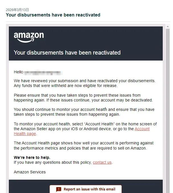 SellerAegis/卖家守护承接此案后,通过专业申诉,10天消除亚马逊平台的账户疑虑,推动账户成功通过临时审核,解除资金冻结!