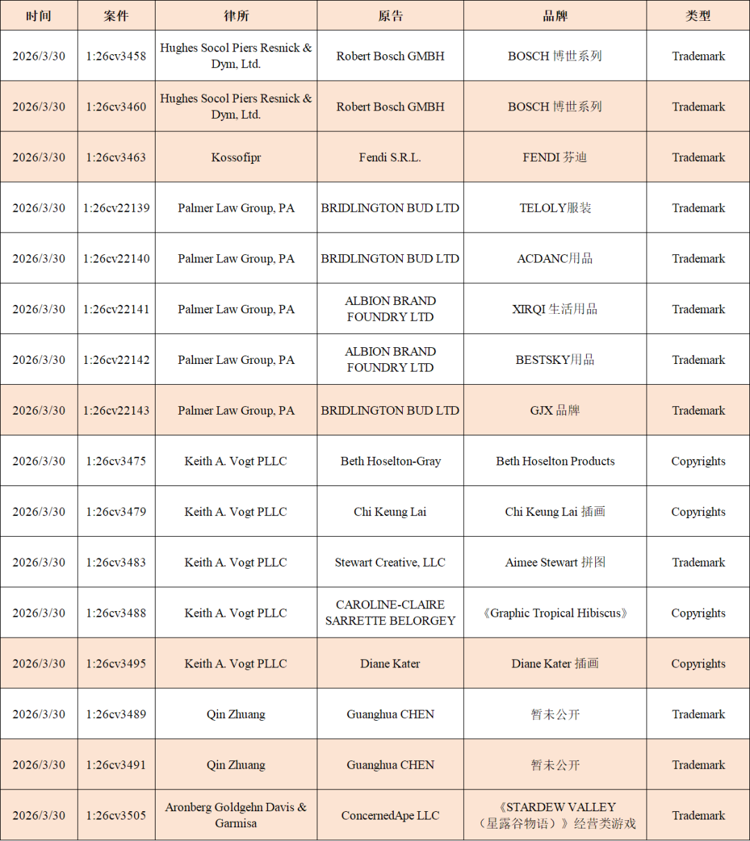 我们汇总了当天发生案件的TRO侵权案件,建议卖家朋友们做好侵权预防,排查店铺,下架相关商品,及时提出资金,以免店铺资金受损!
