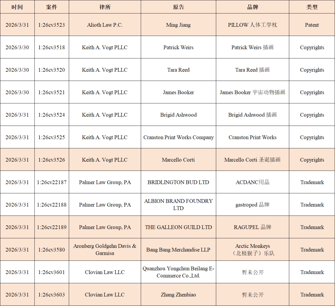 我们汇总了当天发生案件的TRO侵权案件,建议卖家朋友们做好侵权预防,排查店铺,下架相关商品,及时提出资金,以免店铺资金受损!
